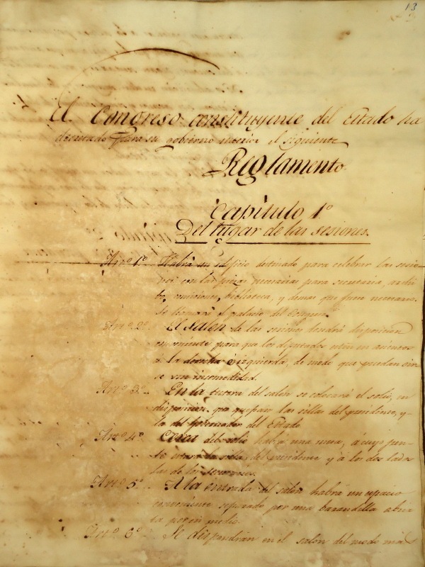 Decreto del Congreso Constituyente del Estado sobre el primer reglamento, 17 de febrero de 1825.