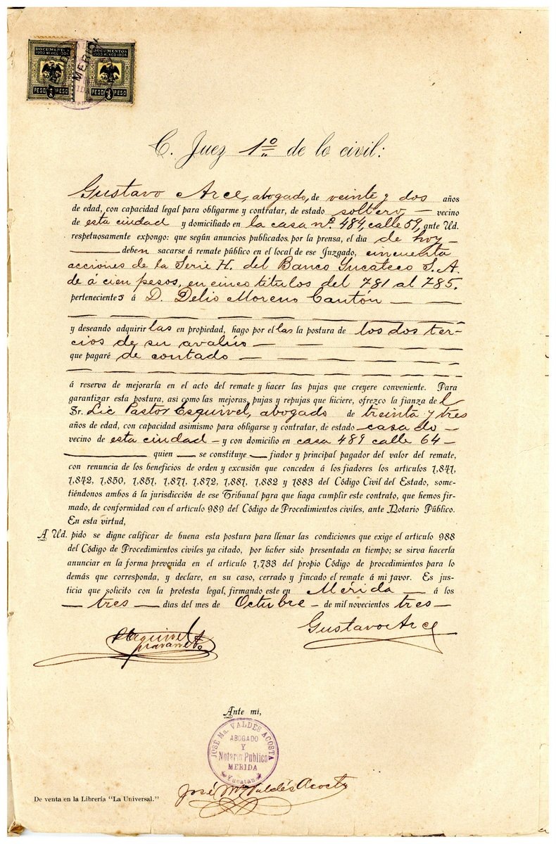 en el cual deja como garantía acciones del Banco Yucateco. Mérida 30 de mayo de 1903